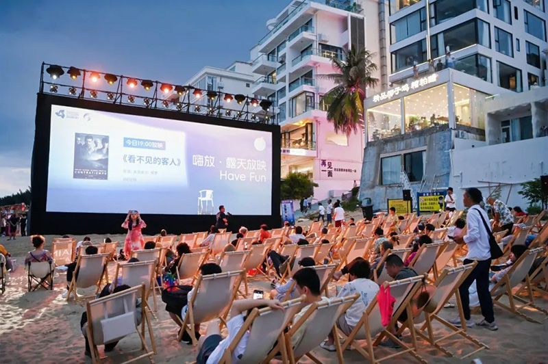 ꧙影片有节楼顶花园放映话动实地现场,受众在海滩浴场上在线看影片有。图起源HIIFF海南省岛國际影片有节微信朋友圈新闻媒体号