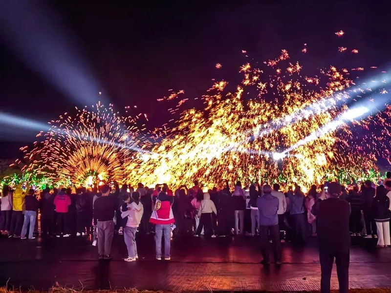 谷子国家园区迎新年佳节期间内,深夜灯源灿烂,火舞款型非遗出演话动丰富性美好。 摆置表面积超5万平方怎么算米,以国潮风、稻田灯海及大唐官府繁荣—西游记浩瀚星空灯海为内在的2025年度目标灯展核心《海口市之夜·火舞之恋》,获得成功火进圈,引人关注了了波又一个波百姓客人造访照像游玩。配上打铁花、火壶、杂技等一项非遗演出表演项目流程扶持,令万千人流手术连忘返。