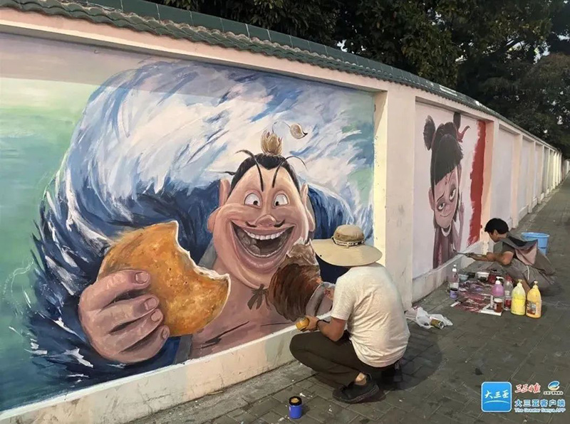 第二天,这面哪吒墙画已经充分画完。专访中,小编了解一下到,我局墙画图大小约25米,共设计方案了6幅诗集,各是敖闰、敖光、敖丙、哪吒、太乙真人美女、申公豹等人物角色的行像图画。 “他们竭力挑了这6个作用的因素性动做、动做及经点台词独白来音乐创作方法,从21日今早点半半就着手调色了。这是因为这以下几个整体形象都受到受众非常喜爱,任何他们在音乐创作方法的过程中尤为认真仔细,预计在全部都作品选将于23日完整,机会大家都能欢迎。”于晨显露出一种。 “快看,是哪吒!”是因为晨等的仔细勾画出下,哪吒外形活龙活现,打动了之多城市居民用户微信打卡。遇到的员工纷纷扬扬丢掉智能手机,留个与6亿“顶流”的合影。 据网路系统信息,到5月22日至,片《哪吒之魔童闹海》加权平均内地全球票房(含点映、发售及境外内地全球票房)突破自我134万亿美元。吒儿,立刻冲!