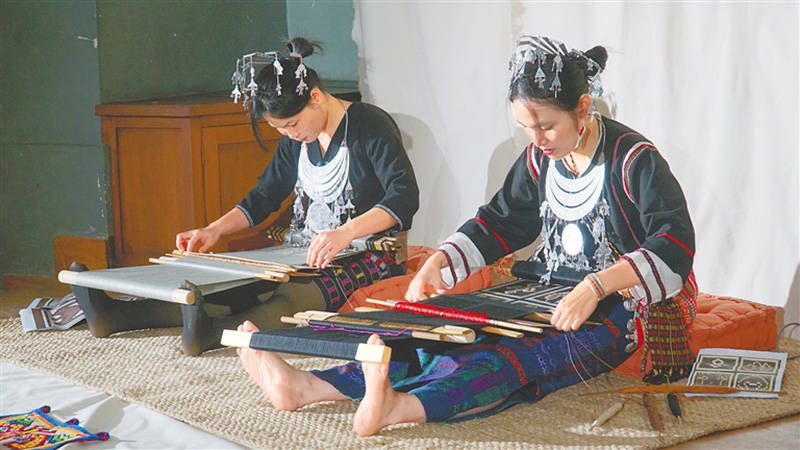 位于五指山的两个非基因遗传规律承人直播 操作方法黎锦编制技术。