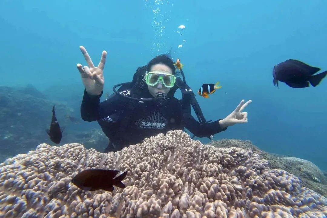 中国游客在经验潜水。图源:琼海市大江海旅游活动区