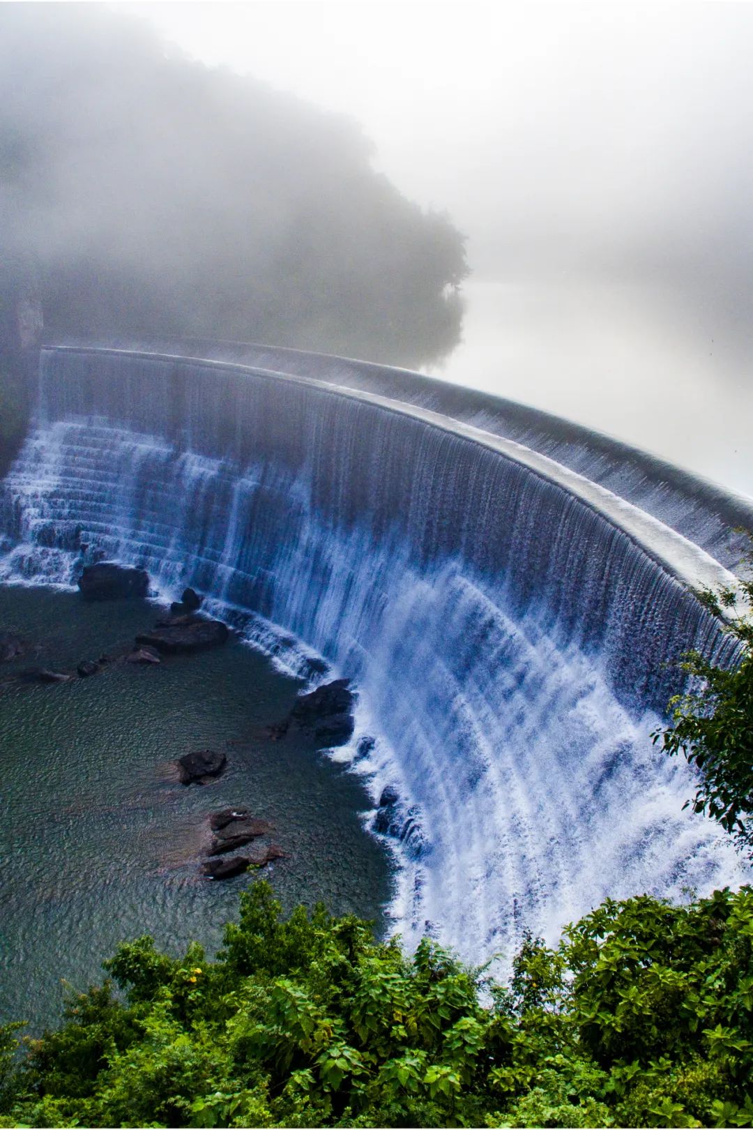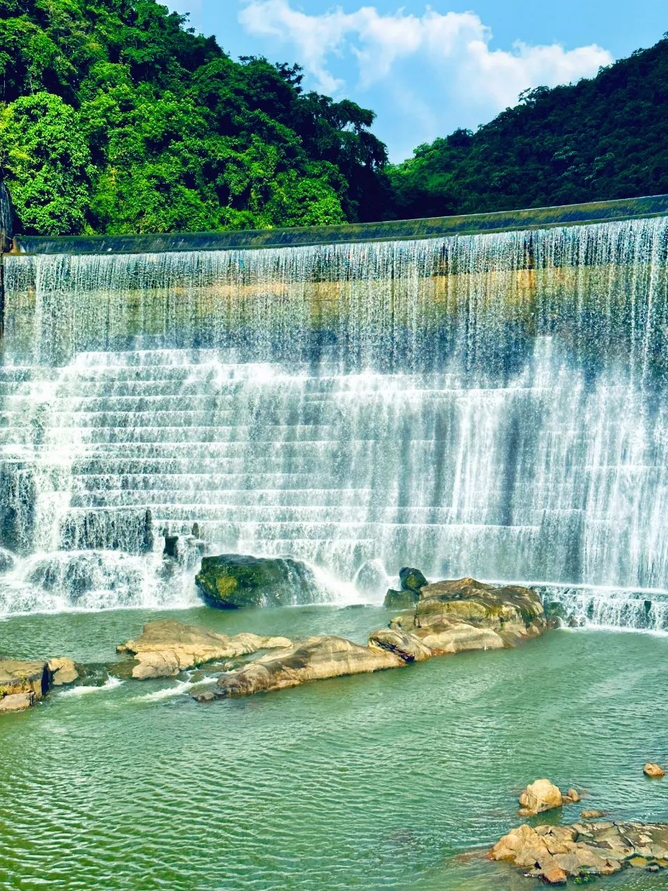 待夏天雨丝织密,藏在林间的银练便倏然涨起。碎浪撞在岩上,溅起的水点用手接住强光,竟抖落出虹光。走到瀑下的剎那,连享受都凝住 —— 那振撼,一开始眼袋直抵心窝的震颤。
