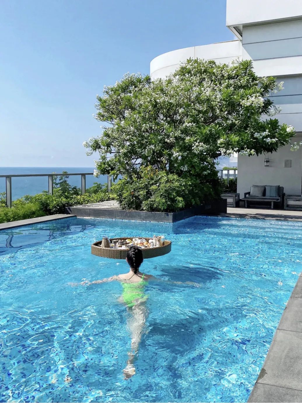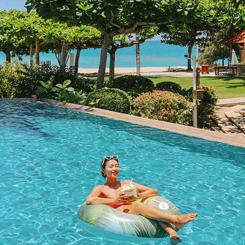 在三亚游玩各家精品酒店的恒温游泳池里,藏着最凉意的在夏季。