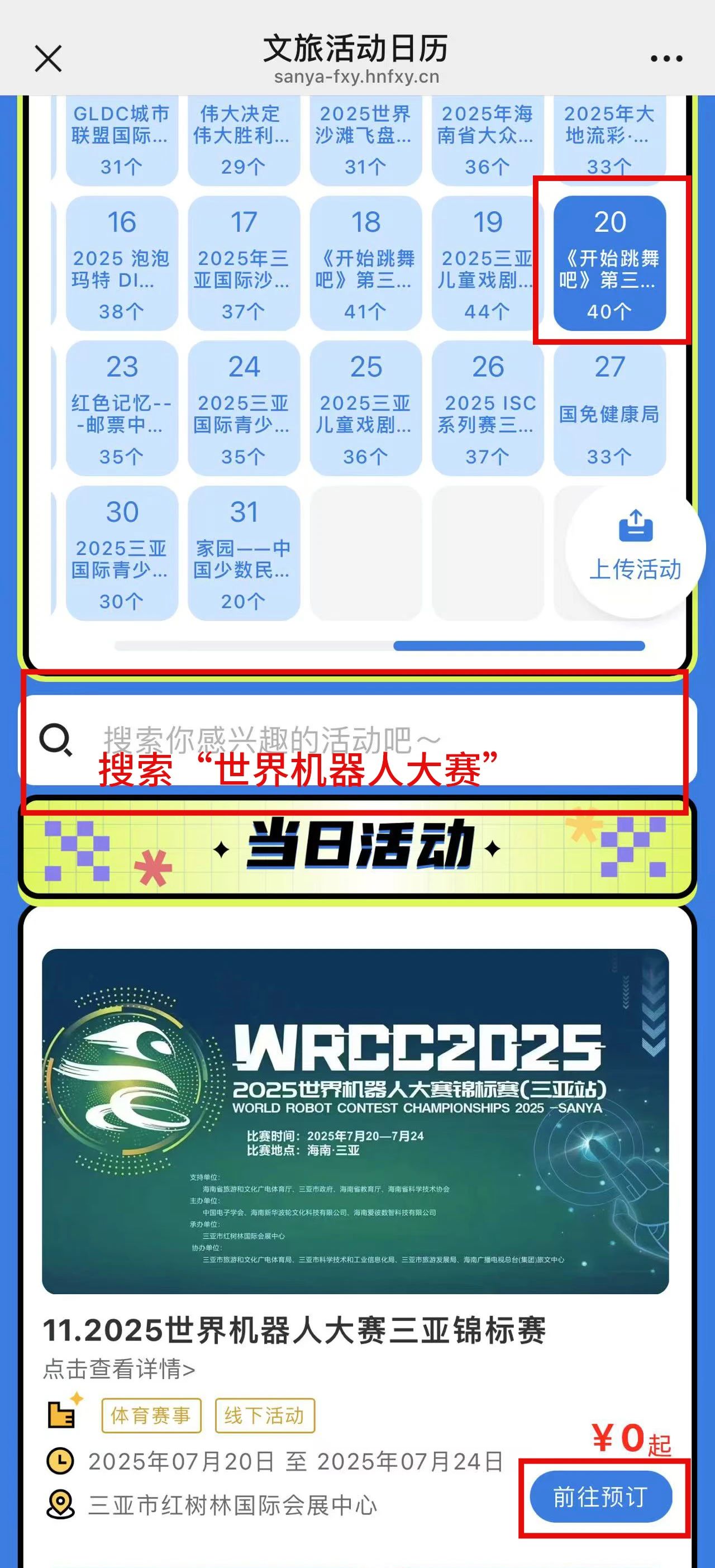 2. 进到“三亚市文旅产业项目曰历”网站,在查找框中查找“当今世界机器设备人技能大赛”,弹窗『千万订购』—0缴纳成就 —网站体现 “待采用”是官网预约成就 。