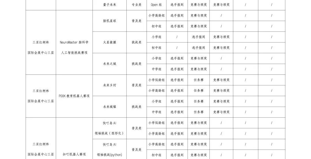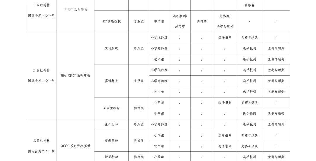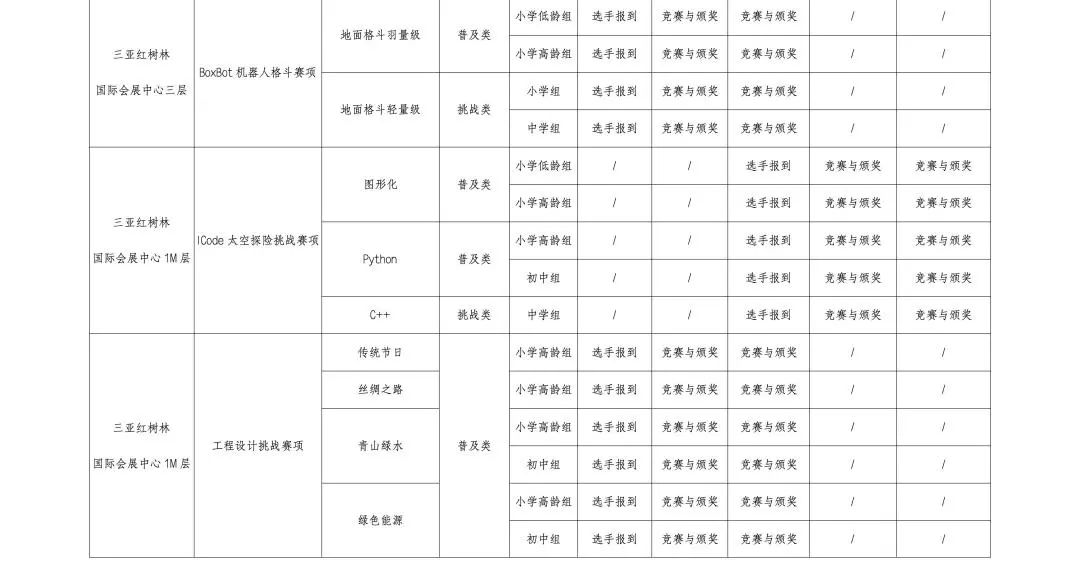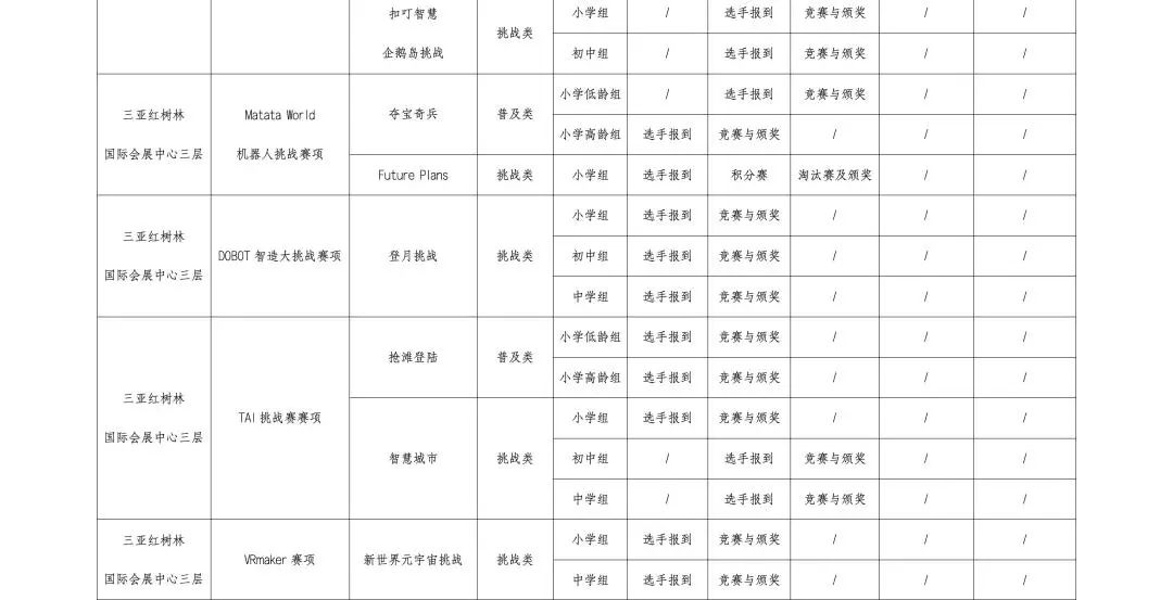 赛事一:三亚游玩市红森林亚太时代国际展览中心的的中心的的(三亚游玩市红森林亚太扩大会议中心的的)一层层 创新大赛ip地址:海口市天涯区金龙路155号海口湾红树丛休闲度假的世界 市赛項目:VEX全品类赛项、Super AI十分痕迹赛项、FIRST全品类赛项、AI创无边赛项、WHALESBOT全品类赛项、ROBOG全品类的巡回赛项、ATC探索世界者科技发展的巡回赛项、Robot Dream全品类赛项; 比赛场二:海口市红山林国外上国外展览中站中站(海口市红山林国外上会议触屏中站)1M层 竟赛详细地址:哈尔滨市天涯区鳳凰路155号哈尔滨湾红小树林度假旅游环境 创新大赛品牌:过程中构思挑衅赛项、ICode航天飞机大冒险挑衅赛项; 比赛场三:琼海市红松小树林香港新国际新国际新国际会展中心点点中心点点(琼海市红松小树林香港新国际大会中心点点)二三层 技能大赛门店地址:哈尔滨市天涯区金龙路155号哈尔滨湾红山林旅居时代 竞赛方案大型项目:创梦开源项目人形桃战赛项、NeuroMaster脑小学科学劳动力智能化桃战赛项、POOK教育培训服务器人赛项、扣叮服务器人赛项、Matata World服务器人桃战赛项、DOBOT创新科技大桃战赛项、TAI桃战赛赛项、VRmaker赛项、BoxBot服务器人综合格斗赛项;