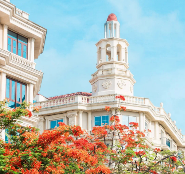 位于大东海西南侧的一个私人小海湾中的吉庆广场安静祥和。你会惊讶地发现自己在典型的伦敦街道上,被欧洲风格的建筑所包围,中间是白色教堂。让多元的三亚见证你的爱!