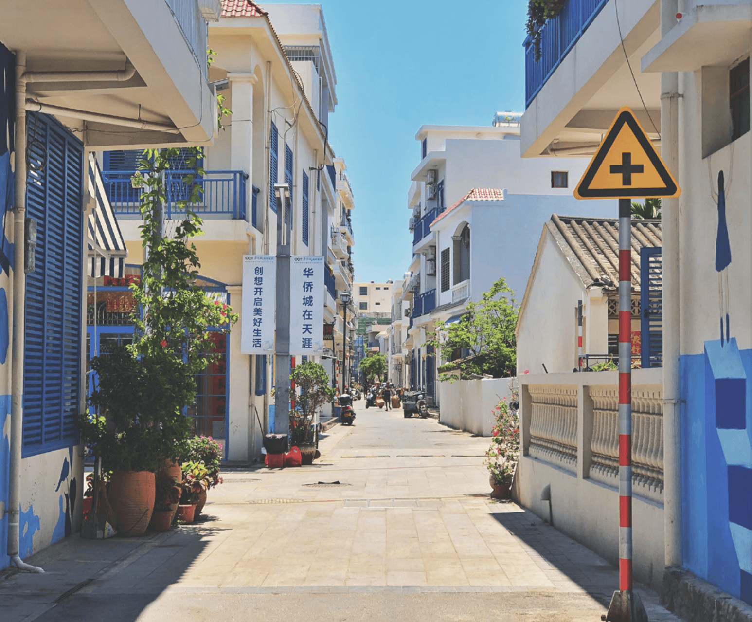 午餐后,如果去天涯镇是非常好的选择。外墙涂成蓝色和白色,因此很多人称其为“三亚的小圣托里尼岛”,一些游客可能会将其与欧洲的小镇进行比较。叶子花在街道的拐角处绽放,五颜六色的木船横过海滩倾斜。当地人用微笑热情地迎接游客。在椰子树的阴影下,奶奶正在修补鱼网,而一艘小渔船上黝黑皮肤的年轻人正要收获大海的礼物。