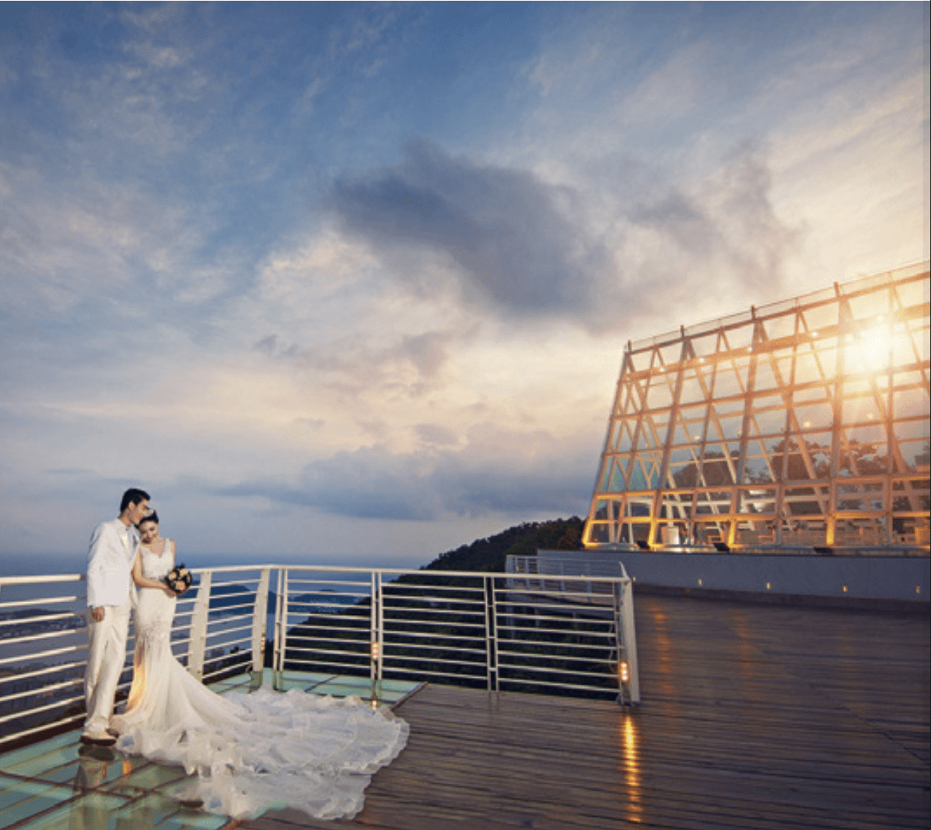 三亚凤凰岭海誓山盟景区可以欣赏到三亚的四个海湾和八个景点的全景。你可以站在360°的全景观光悬挂走廊上,观察大海与天空融为一体。 “海誓山盟”广场和水晶教堂非常适合约会和求婚。